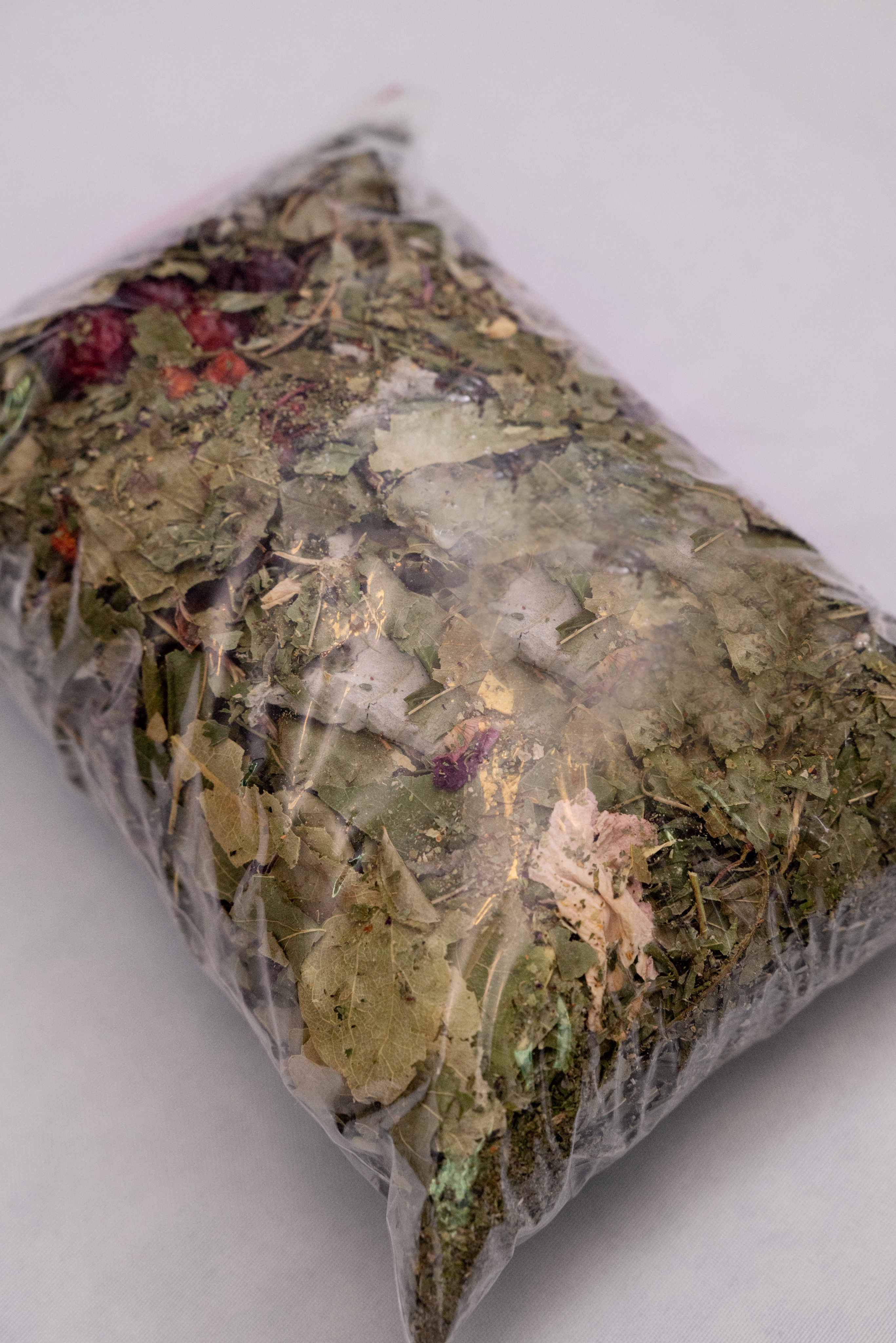 В составе: душица, мята, чабрец, зверобой, шалфей, листья малины, брусники, черники, иван-чай, плоды шиповника, рябины, барбариса, смородины и цвет липы. Каждая из этих трав традиционно ценится за свои полезные свойства.