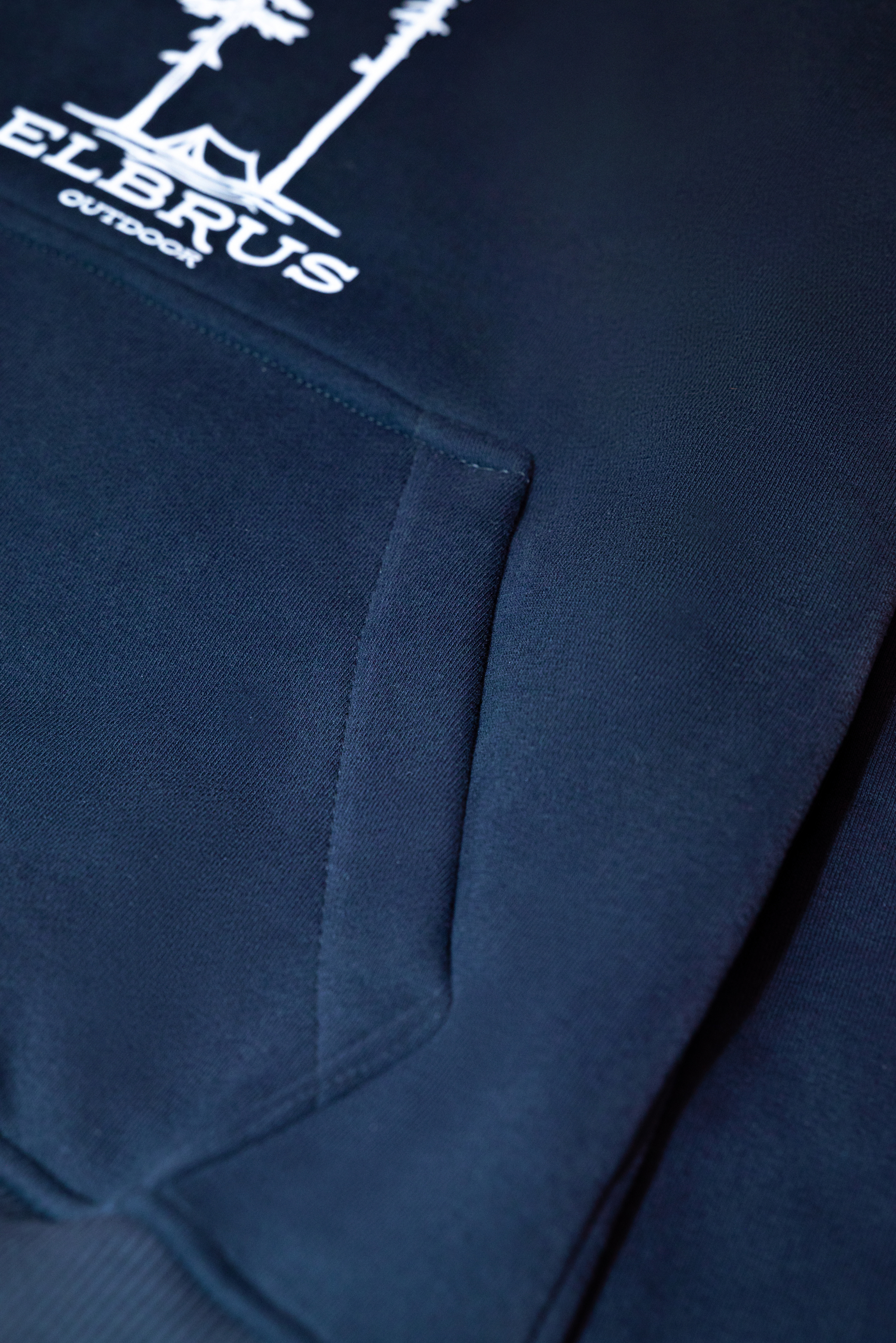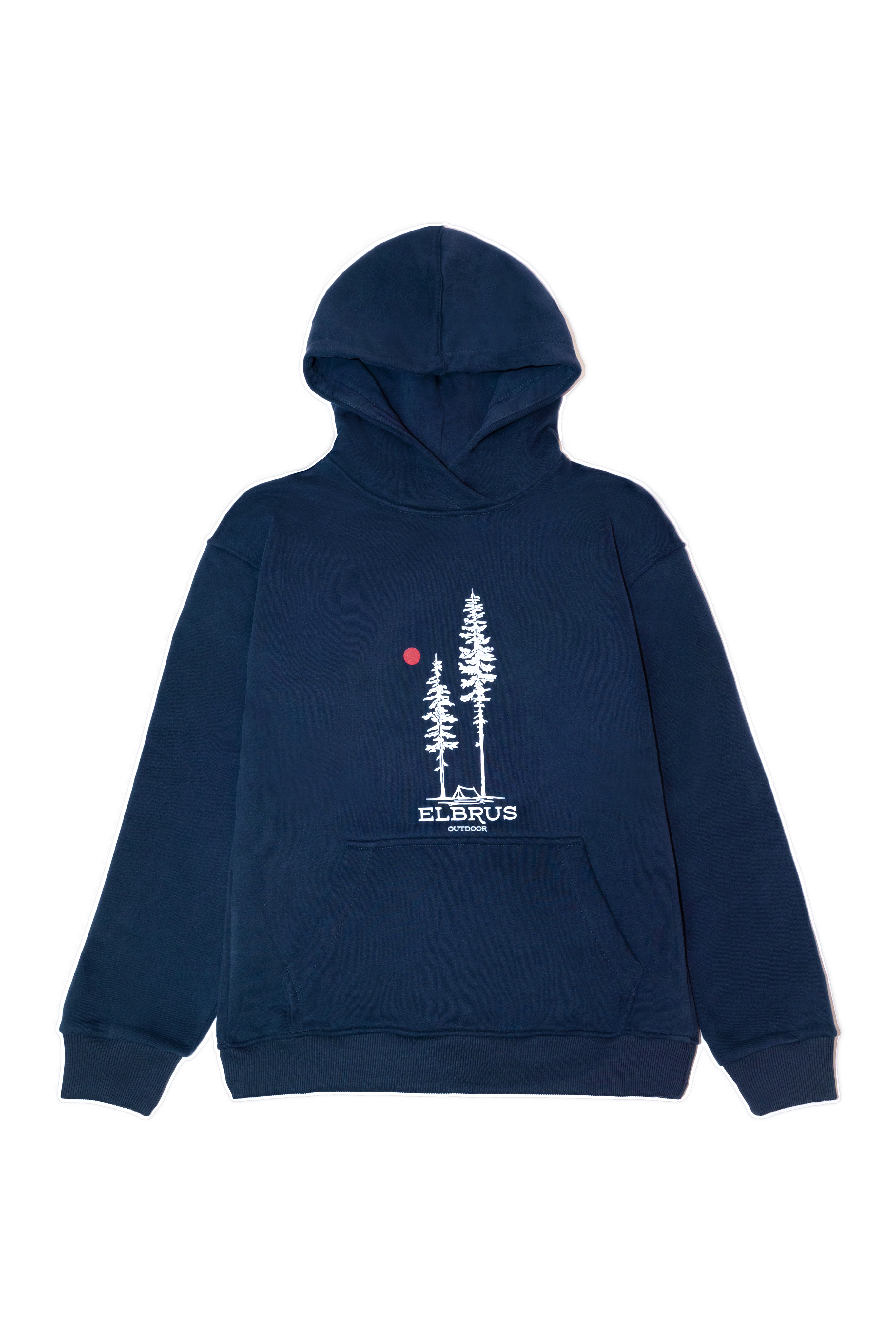 Худи тесно-синего цвета с уютным капюшоном и принтом, выполненным шелкографией с изображением соснового леса - одного из символов Приэльбрусья. Спину украшает надпись "My heart is in the Highlands (в переводе «Моё сердце находится в горах»)