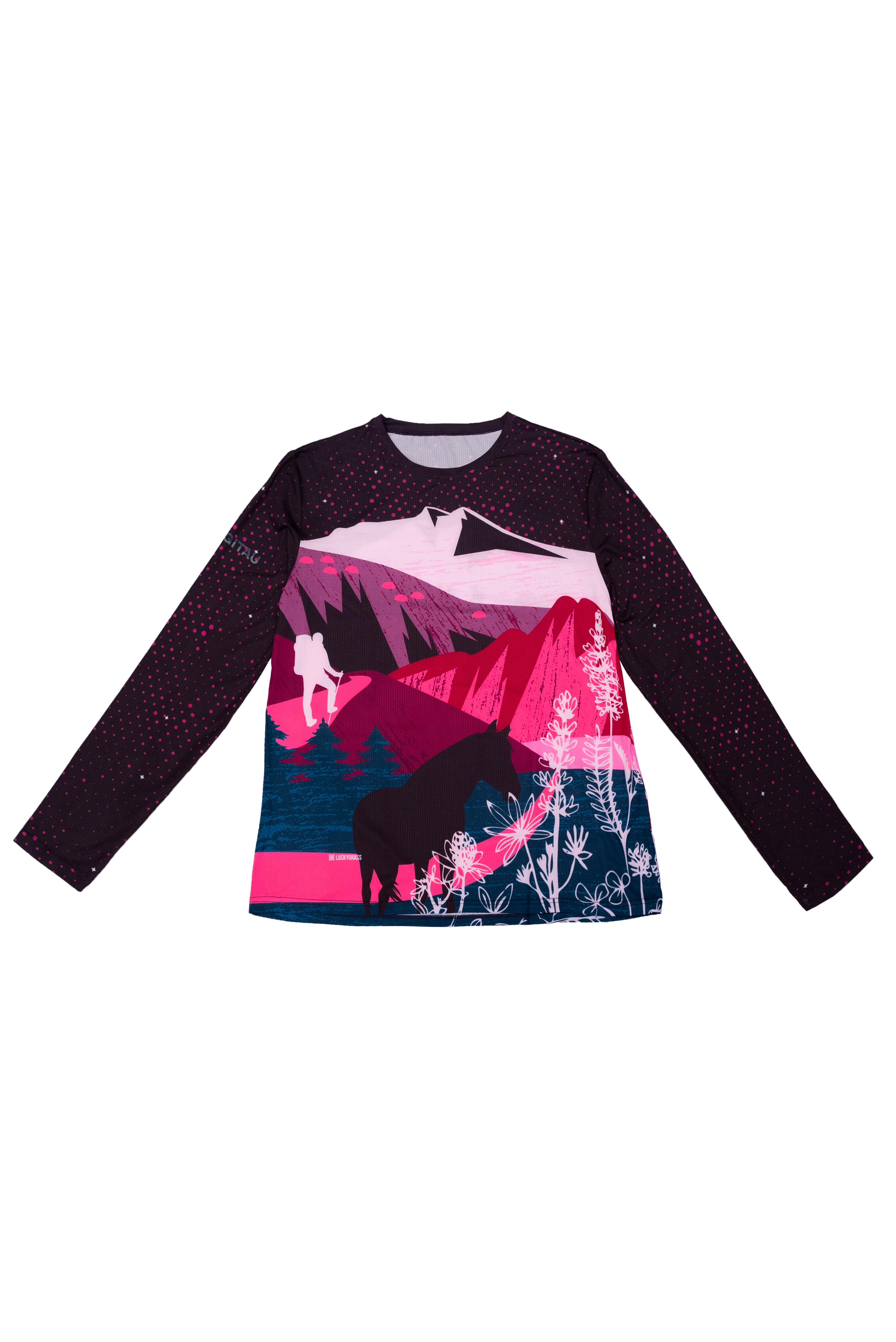Лонгслив из микрофибры от бренда MINGITAU с ярким принтом в розовых тонах: Эльбрус и поля у его подножия. Лёгкий и приятный к телу материал обеспечивает комфорт в течение всего дня, а насыщенные оттенки делают модель выразительной и стильной. Отличный выбор для активного отдыха и повседневной носки.