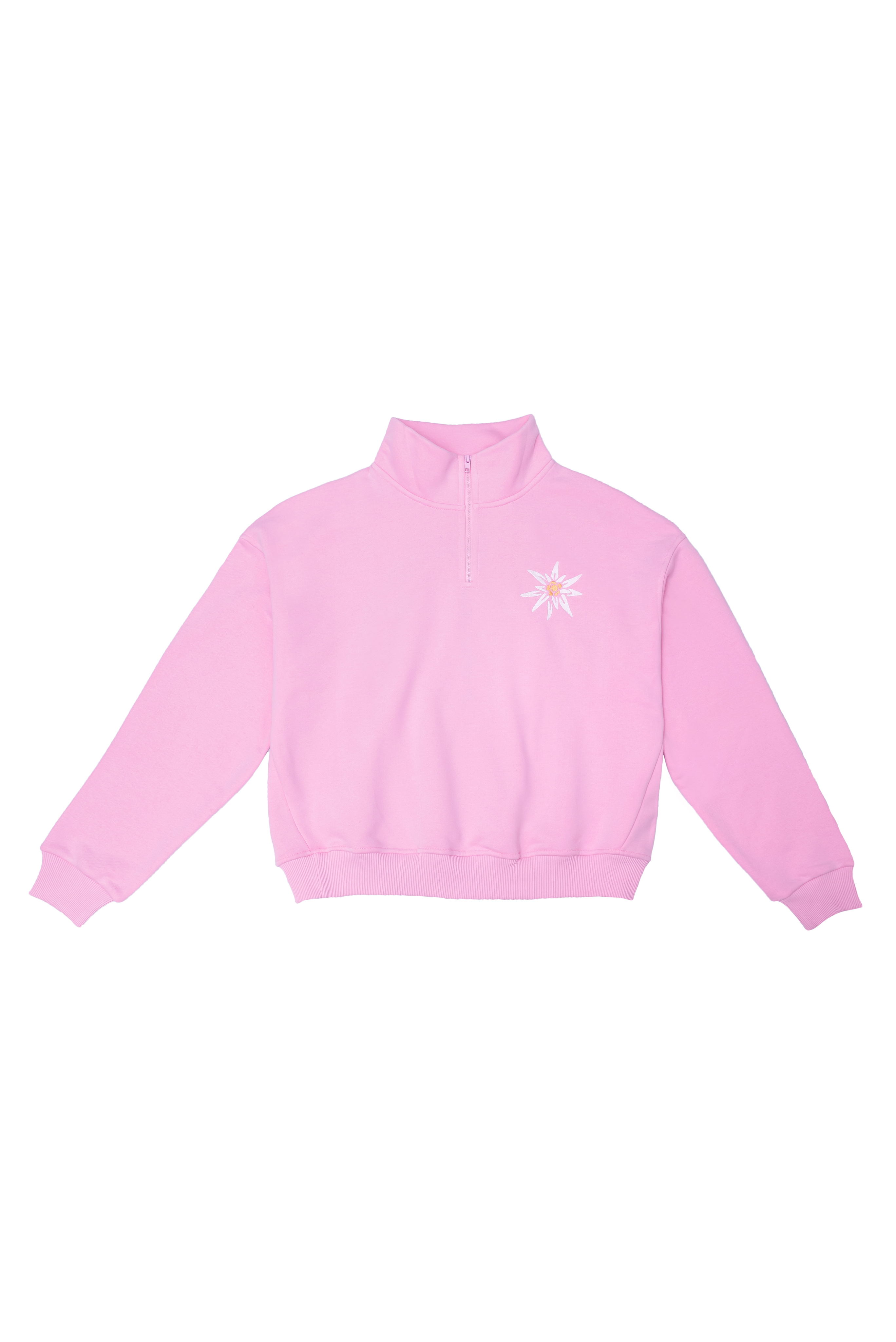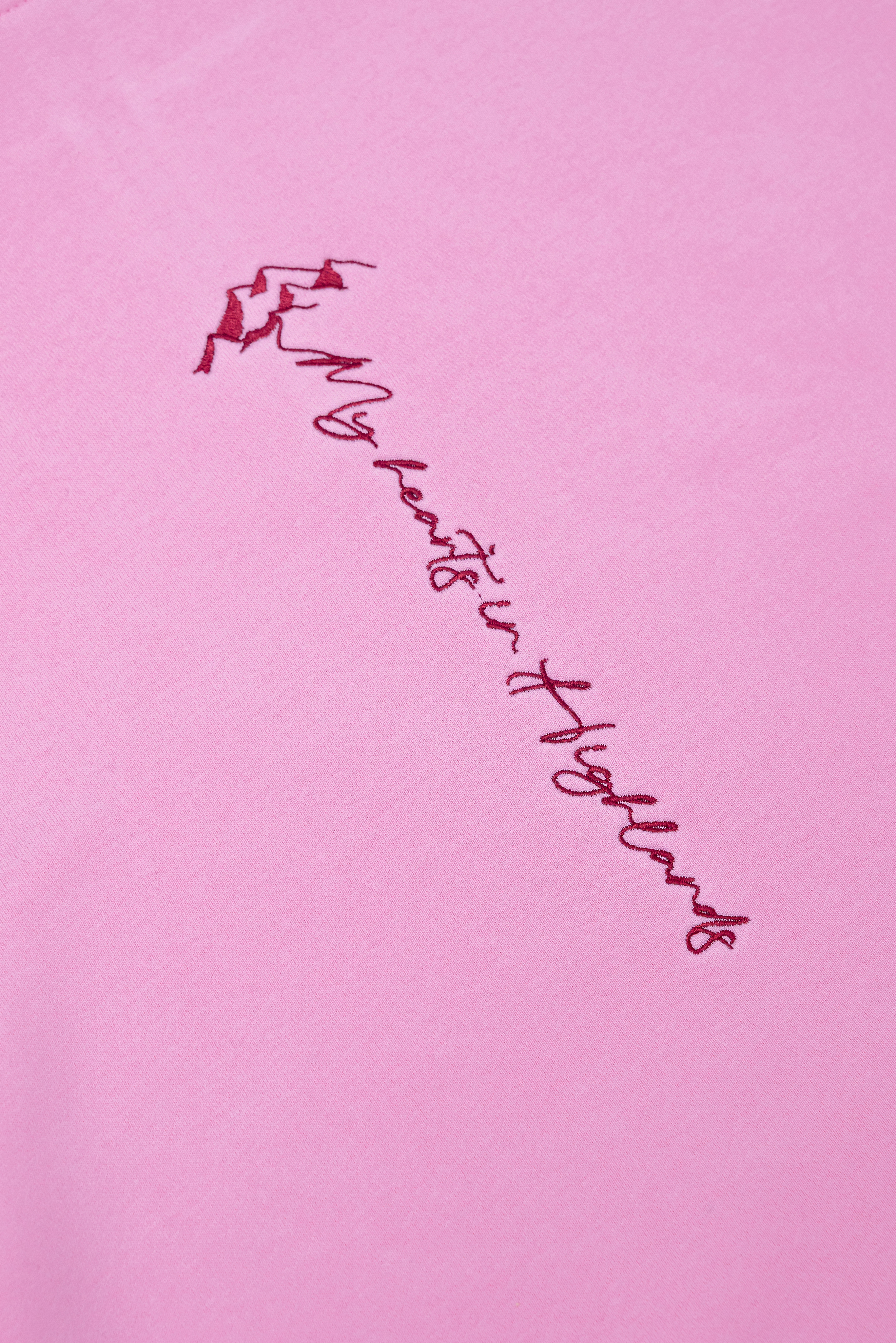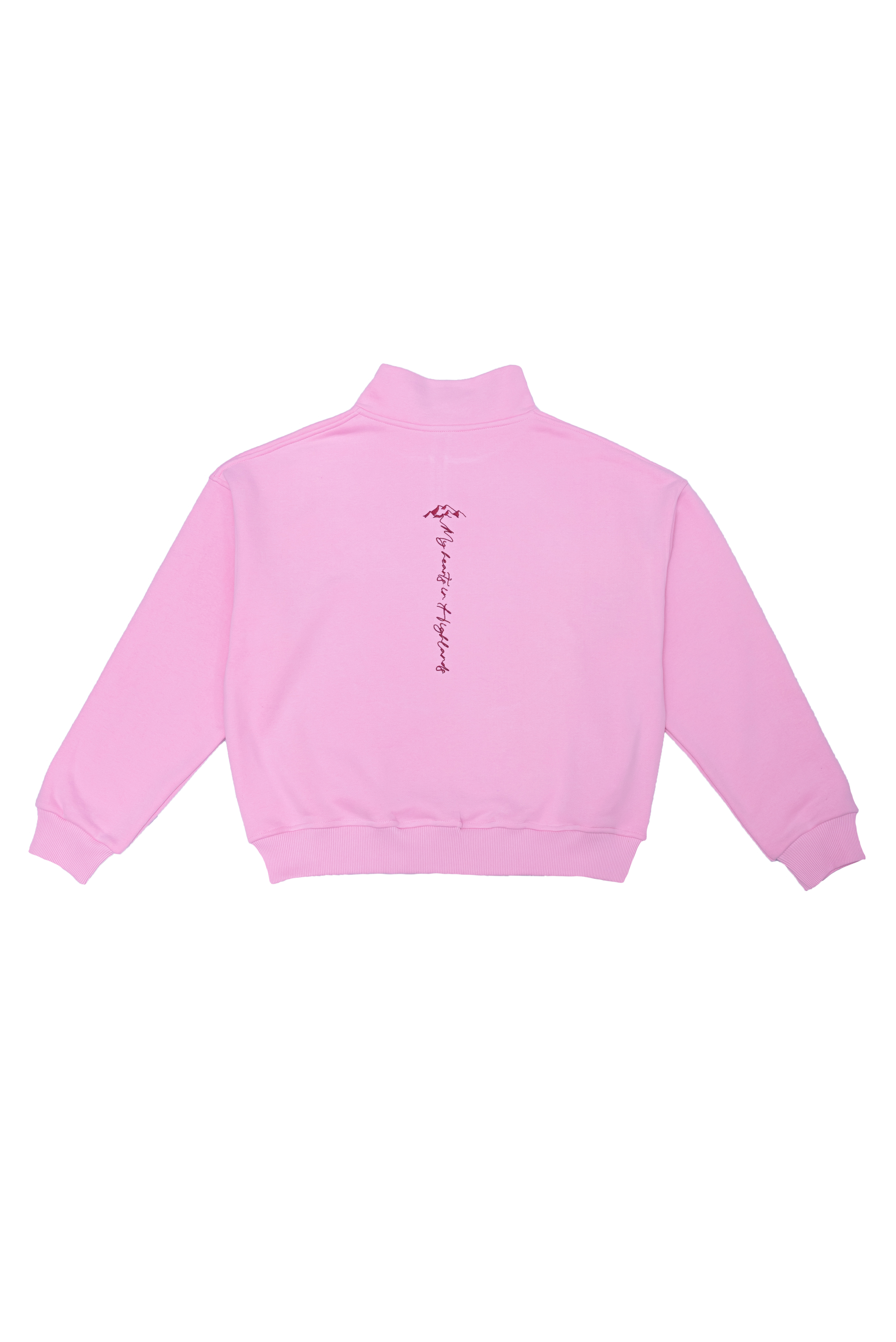 Нежность и сила гор в одной вещи. Розовый свитшот MINGITAU с воротом на молнии украшен вышивкой эдельвейса — редкого горного цветка, ставшего символом высоты и свободы. На спине — надпись «my heart in highland» (моё сердце в горах), как напоминание о любви к горам.