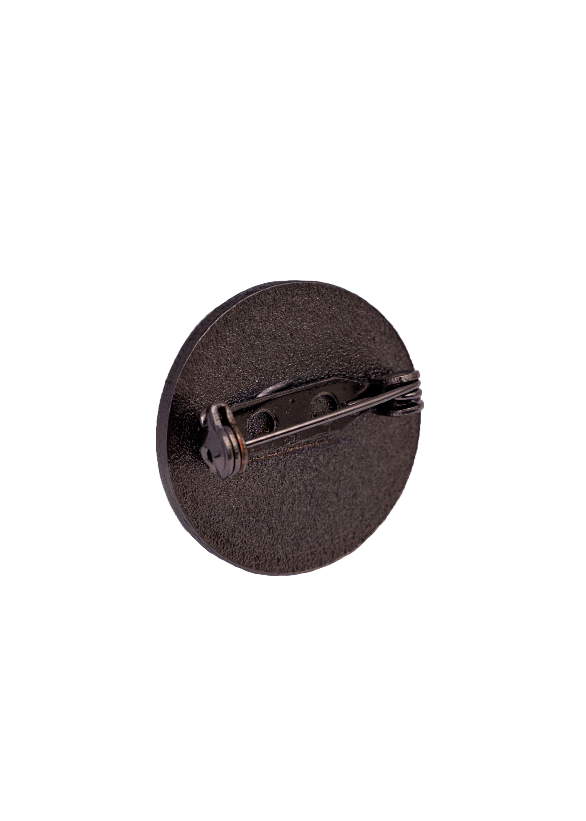 Металлическая основа, круглая форма и диаметр 2,5 см делают его стильным и долговечным дополнением к любому образу.